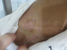 临床治疗:智能308光疗+脐疫磁波促药治疗+皮肤移植术